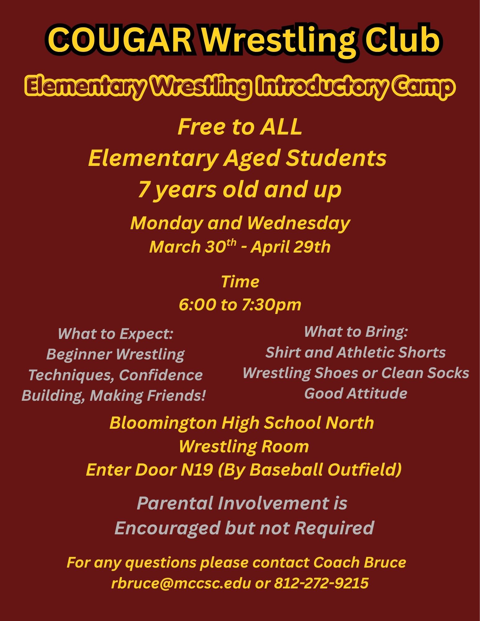 Where: BHSN Main Gym & Auxiliary Gym – 3901 N Kinser Pike Bloomington IN, 47404